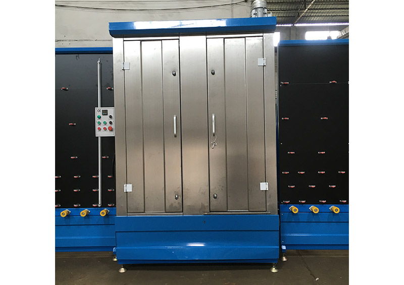 本机适用于平板玻璃的立式清洗加工。清洗室内设三组毛刷棒,可对特殊镀膜玻璃等进行软加工;风干室采用一对高压风刀,配置一个大功率高压风机及发热管送出高压热风吹干玻璃;机器采用二个水泵供应循环水给毛刷棒清洗玻璃,并在水箱设置发热管加热水温,使玻璃清洗效果更好。本机操作简便,工作效率高,很受国外用户欢迎。